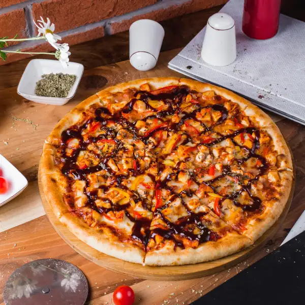 A hearty pizza loaded with four types of savory meats—pepperoni, Italian sausage, ham, and bacon—topped with melted mozzarella cheese and rich tomato sauce on a hand-tossed crust. Each bite delivers a satisfying combination of smoky, salty, and cheesy flavors, making it a perfect choice for meat lovers. Ideal for sharing or enjoying as a filling meal.