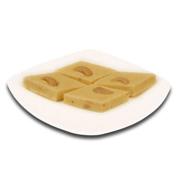 A royal Indian classic made from finely ground cashews and pure ghee — delicately sweet, smooth in texture, and elegantly finished with a touch of silver leaf for a truly premium indulgence.