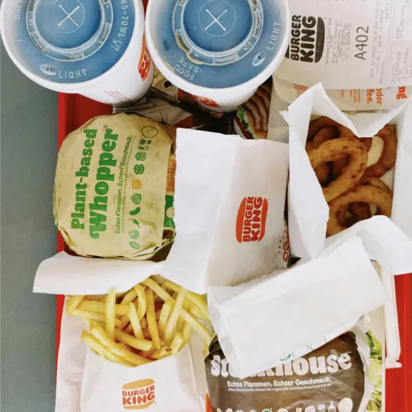 The iconic Whopper features a flame-grilled beef patty, fresh lettuce, ripe tomatoes, crisp onions, pickles, and Burger King’s special sauce, all served in a sesame seed bun. Every bite delivers a juicy, smoky flavor that has made it a worldwide favorite for decades.